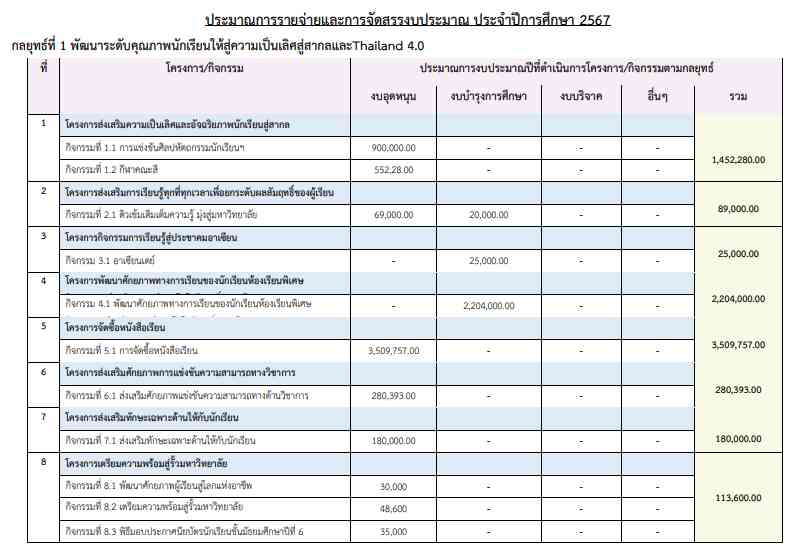 แผนปฏิบัติการ ปีการศึกษา 2567 แผนงบประมาณโครงการ/กิจกรรม - 1 MB (Text)